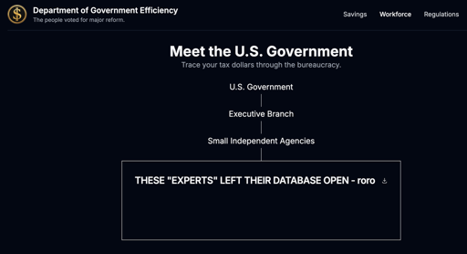 riot@slrpnk.net to Technology@beehaw.orgEnglish · 1 year agoAnyone Can Push Updates to the DOGE.gov Websitewww.404media.coexternal-linkmessage-square10fedilinkarrow-up1159arrow-down10file-textcross-posted to: [email protected]