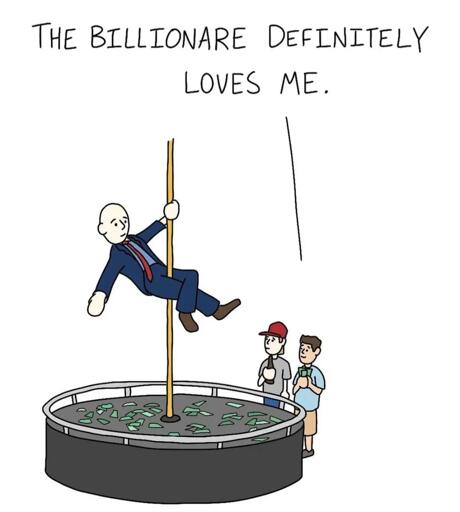 If I pay a stripper she’ll give me a lap dance. The terms of the deal are straightforward. If I give a billionaire money they’ll just fuck me over and ask for more money.