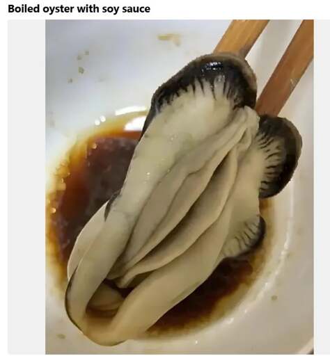 I have shucked, literally, thousands of oysters, and I’ve never seen one that looked anything close to this. If anyone has any more information or a Wikipedia link or something, I’d like to see it, but this strikes me more as some sort of “food parody” made out of wax, paraffin, and fondant