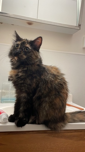 She is polite and very gentle, but she also is sassy (sassemis), an ankle biter when she wants to play and particular about how she recieves affection. She loves being picked up and carried around the house as well as getting spooned at night. And though she may not sit on my lap or interact directly with me much throughout the day, she will follow me around non stop which I love. Always one little kitty kat step behind me.