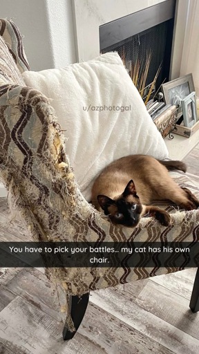 We had this old chair from the 60s our cat loved to rip up over the scratching boards.