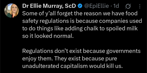 Market self regulation assumes informed consumers that are smart enough to know what things mean. Also it assumes healthy competition and companies that are competing to make the best product at the chrapest price. It ALSO assumes brand lotalty isn’t a thing, and consumers are judging things purely objectively.