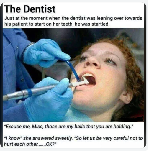Wrong, that would be the dental hygienist. Dentists rarely perform standard cleanings as pictured.