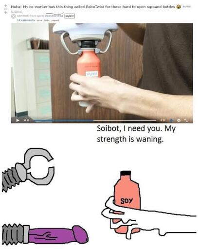 Is this meme making fun of people with disabilities, then using the soy term as derogatory to call people who eat soy weak and alluring that they would get fucked by the bot?