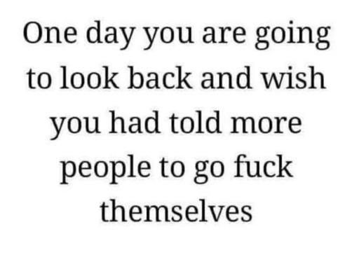 Now go do that out in the real world and feel how amazing it feels to tell some asshole to go fuck themself, it’s part of my therapy now.