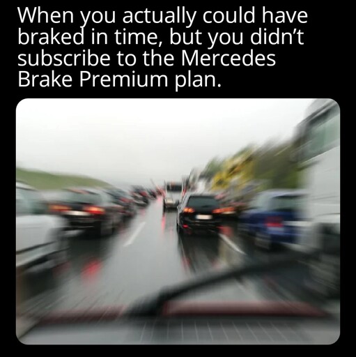 “We’re sorry. You’ve used all of your brake hours for the month. Please pay $59.99 for the next 10 braking hours.“