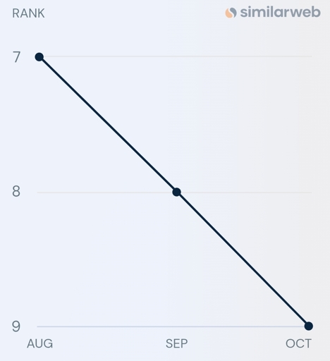 If you click on reddit on the similarweb website it shows rank 9