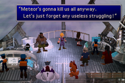 Cid: Maybe ain’t none of us’ll come back. Meteor’s gonna kill us anyway. Let’s just forget any useless struggling!