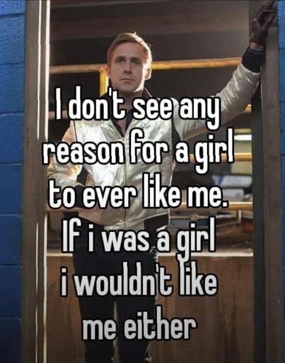 That’s some low self esteem shit, I hope you get better.