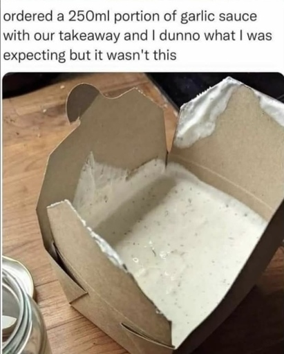 ickplant@lemmy.world to Lemmy Shitpost@lemmy.world · 2 months agoGarlic saucelemmy.worldimagemessage-square33fedilinkarrow-up1526arrow-down14
