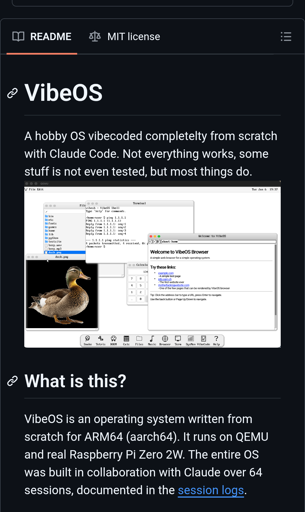 You can hate AI , LLMs etc. But this is interesting and funny. They are transparent about the usage of AI, which is already better than some AAA game company who tries to hide it. Obviously this is just a proof of concept and they probably learned something about OS design