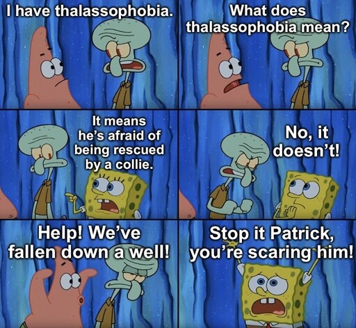 Yeah I have thalassophobia, I’m afraid of tha lasses (i am lonely 😎)