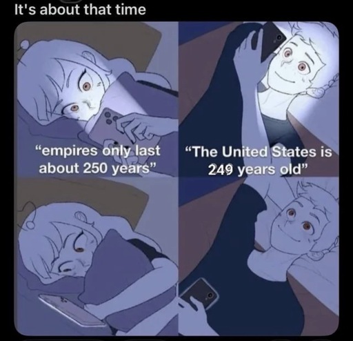 This “250 year thing” makes me feel the same way as when I play new Vegas and Caesar say he will destroy the NCR because of dialectics. THATS NOT HOW IT WORKS YOU FUCK