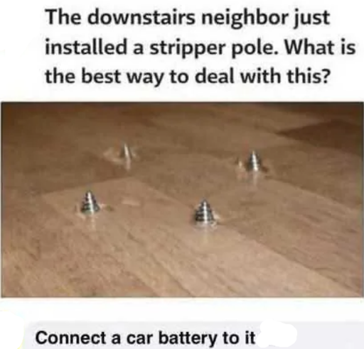When was the last time you ever asked or insisted your neighbors to fix anything? Especially neighbors with a stripper pole?