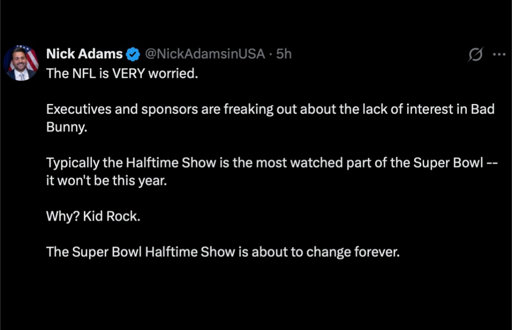 I mean we can be sure the Super Bowl staff are very good at choosing people that are culturally relevant and will make people spend on ads. Not into Bad Bunny myself, although not really tried yet, but I believe he’s massive.