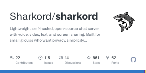 .gitignorefile and this was built by a single person in about 4 months) A bunch of security issues have already been opened.https://github.com/Sharkord/sharkord/issues/86 This one seems pretty bad.