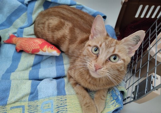 All her kittens were adopted out before her, and she was laying in her pod looking sad and lonely. She let me pat her right away when the volunteer opened the door.She had a sign on her pod door saying she gets really stressed out by the noise and activity in the shelter. My home is quiet and peaceful so I brought her home and she let me give her some more pats when I let her out of the crate in the bath. Now she’s hunkering down in a quiet dark corner getting her bearings. Her full name is Margarine.