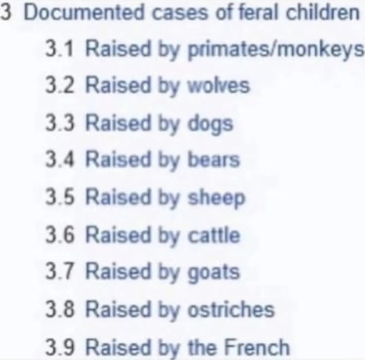 Where “free range” children count as feral, all French children are feral. Was a trick category.