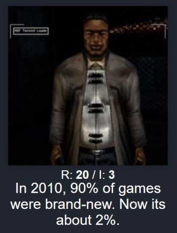 If 90% of games being brand new was the standard, we would need a horrifying amount of games every year and by now there’d prob be more games required than humans to make them